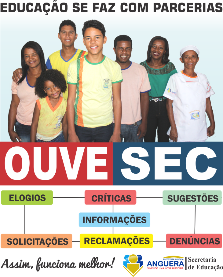 O Projeto OUVESEC é uma iniciativa da Secretaria de Educação do Município de Anguera, visando acompanhar o desenvolvimento das ações e o funcionamento de todos os setores e das unidades escolares, na Rede Municipal de Ensino.